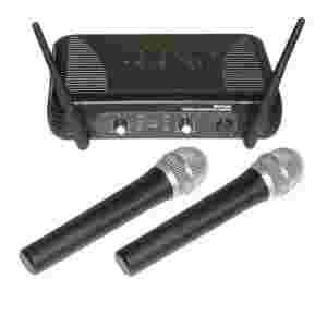 - Komplet zawiera: : 2x Mikrofon do ręki, Stacja odbiorcza, Kabel Jack-Jack, Baterie, Instrukcja Obsługi