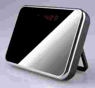 Mikrokamera o bardzo szerokim kącie widzenia obiektywu ukryta w eleganckim budziku. Spełnia swoją rolę - wskazuje czas, datę, temperaturę, umożliwia ustawienie alarmu z funkcją drzemki oraz głosowo informuje o bieżącym czasie. Posiada funkcję detekcji ruchu. Rejestruje obraz video z jakością HD w rozdzielczości 1280x720. Dołączone do budzika akumulatory pozwalają na 24 godziny ciągłego nagrywania.