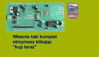 Zmontowany i uruchomiony układ, w komplecie karta SD nagranymi przykładowymi dźwiękami, rozmiar karty losowy, jaki akurat mam, przeważnie 512, lub 1G.