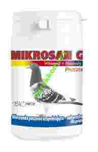 Mikrosan G jest specjalistycznym preparatem przeznaczonym dla gołębi. Zestaw witamin, makro- i mikroelementów zawartych w preparacie jest niezbędny do zachowania zdrowia i prawidłowego funkcjonowania organizmu.