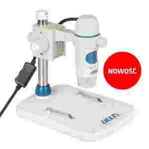 W zestawie z mikroskopem znajduje się stabilny statyw z możliwością regulacji wysokości i pokrętłem ustawiania ostrości, dzięki któremu obserwacja i wykonywanie pomiarów pod dużymi powiększeniami staną się znacznie wygodniejsze (eliminacja drżenia). Jednocześnie, urządzenie można trzymać w ręku jak długopis, co pomoże w obserwacji fragmentów obiektów o znacznych rozmiarach, których nie umieścimy pod zwykłym mikroskopem. W tym wypadku dużą mobilność zapewnia kabel USB o długości 1,4 m. Urządzenie, w porównaniu ze standardowymi mikroskopami na dużych statywach, jest bardzo poręczne. Obserwacja w warunkach zbyt małej ilości światła przestaje być problemem dzięki wbudowanemu oświetleniu diodowemu LED o płynnie regulowanej jasności.