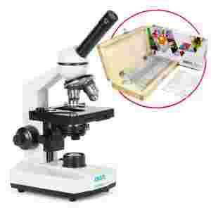 Mikroskop wyposażony jest w cztery obiektywy: 4x, 10x, 40x oraz obiektyw immersyjny 100x, gwarantujący dużą rozdzielczość. Powiększenie od 40x do 1000x pozwala obejrzeć żywe mikroorganizmy np. bakterie, pierwotniaki, nicienie, czy wrotki (np. co kryje kilkudniowa woda z wazonu z kwiatami lub co znajdziemy w wodzie z ogórkami kiszonymi), a także uprzednio przygotowane preparaty tkanek roślinnych i zwierzęcych. Obserwator korzystający z mikroskopu dąży do pogłębienia swojej wiedzy, uczy się skrupulatności i dyscypliny, skupienia i spostrzegawczości, stawiania tez i analizy, a nawet pracy zespołowej.