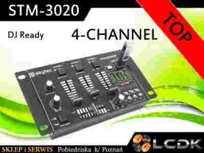 Skytec STM-3020B to mały i prosty, a zarazem bardzo funkcjonalny 6 kanałowy mikser posiadający wbudowany odtwarzacz plików MP3 z portu USB Urządzenie posiada 1 wejście Line stałe, 2 wejście zamienne Line / Phono, 2 wejścia mikrofonowe oraz wyjście słuchawkowe. Wersja z wyświetlaczem ledowym.