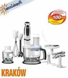 Wymienne końcówki: miksująca, ubijająca, przystawki do siekania, 350ml, oraz 2,1,5 z funkcja krojenia na plastry i ścierania - trzy wymienne tarcze, przystawka miksująca i ubijająca, NOWOŚĆ - przystawka do wyrabiania ciasta