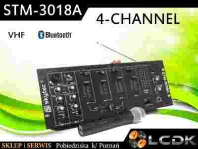 STM-3018A - 6-kanałowy mikser i wzmacniacz o mocy 300W z odbiornikiem Bluetooth. Również wyposażony w system mikrofonowy VHF, który ma jasną i dokładną jakość dźwięku. Posiada crossfader, selektor Cue, regulacja głośności słuchawki, funkcja zapowiedzi na obu kanałach mikrofonowych i przełączniki Phono / Line. Wielofunkcyjny mikser idealny na imprezy, karaoke, do użytku domowego itp