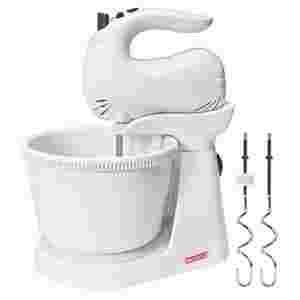 Śmietana się ubija, a Ty się przyglądasz! Mikser z 6 prędkościami. Misa z tworzywa, o pojemności do 2 litrów. Proste mocowanie zatrzaskowe umożliwiające sprawne zamontowanie i wyjęcie miksera z podstawy. W zestawie 2 końcówki do ubijania i 2 końcówki do mieszania. Moc: 220 W. Napięcie: 230 V. Masa: 1,85 kg.