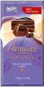 Ciasto czekoladowe (15%) z kremem kakaowym (26%), pokryte alpejską czekoladą mleczną