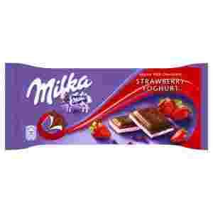 Czekolada mleczna z mleka alpejskiego z nadzieniem o smaku truskawkowo-jogurtowym (50%).