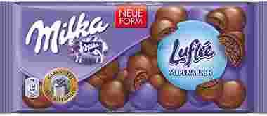Czekolada z alpejskiego mleka z bąbelkami powietrza, rozpływa się w ustach.