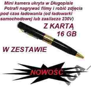 Lekki, Cienki, Wygląda jak prawdziwy długopis którym można pisać. Łatwy w użyciu. Nagrywarka wideo z dźwiękiem 24 kHz; plus dyktafon z Video;