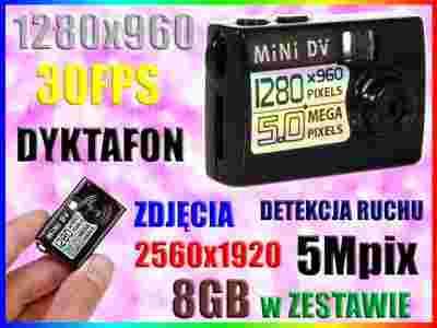 MINI KAMERA SZPIEGOWSKA HD APARAT DET. RUCHU +8GB