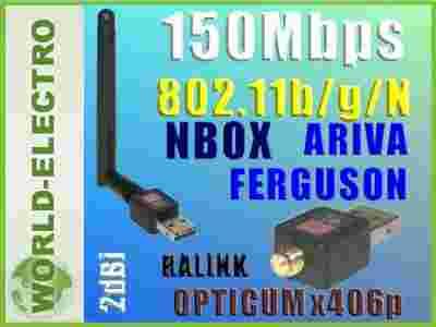 Adapter WiFi kompatybilny z urządzeniami Ferguson : ARIVA 52E, ARIVA 102 cable, ARIVA 102 mini, ARIVA 102E, ARIVA 202E, ARIVA 150 COMBO, ARIVA 250 COMBO