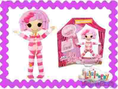 Śpiewające i tańczące Laleczki z serii Mini Lalaloopsy Silly Singers. Laleczki śpiewają dwie piosenki. Przyciskając co chwilę przycisk na brzuchu śpiewają jedną piosenkę, a po przyciśnięciu przycisku z tyłu głowy drugą. Śpiewając tańczą machając nóżkami, rączkami i poruszają głową. Lalki na baterie 3x1,5V - LR44 (załączono w zestawie). Wysokość lalki: 13cm.