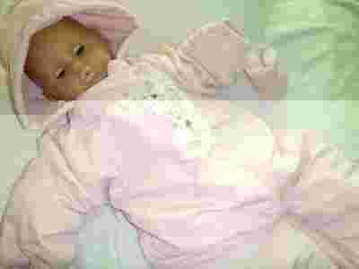 Śliczny słodki kombinezon z ciepła podszewka w środku, z kapturkiem i dopinanymi rękawiczkami. Kombinezon zapinany na zamek na całej długości i skośnie dodatkowo na przodzie na napkę. Wygodny, szeroki z haftowanymi kwiatkami. Rozmiar z metki 18-24m 86-92