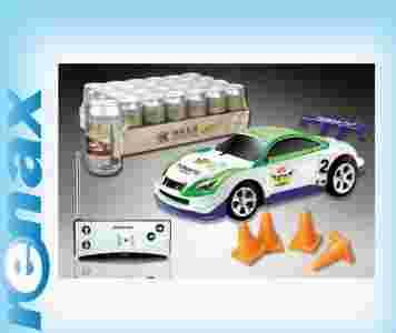Czy to cola czy samochód? W wyjątkowy sposób zapakowane samochodziki RC z 4 pachołkami pozwala na micro wyścigi na najmniejszych powierzchniach płaskich.