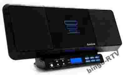 Dane techniczne: Złącza: 1 x USB, 1 x SD, 1 x wejście jack 3,5 mm wyjścia AUX, 1 x gniazdo słuchawkowe 3,5 mm, 1 x RCA, wyjście na subwoofer. Obsługiwane formaty audio: CD, CD-R, CD-RW, MP3 Odczytuje tagi ID3 Automatyczne i ręczne strojenie Łatwa nawigacja folderów wyłącznik czasowy Wbudowany equalizer funkcja drzemki Zintegrowana antena tylna Wyświetlacz LCD z niebieskim podświetleniem 2 baterie AAA do zegara (nie dołączone) Zasilanie: 230V, 50Hz