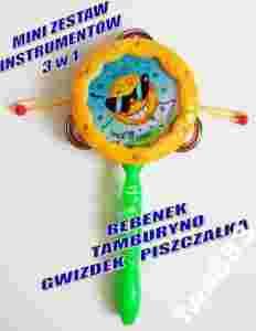 MINI ZESTAW INSTRUMENTÓW BĘBENEK TAMBURYNO 3w1