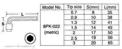 miniaturowe imbusy 0.7mm-3mm 7szt Chrome-Vanadium