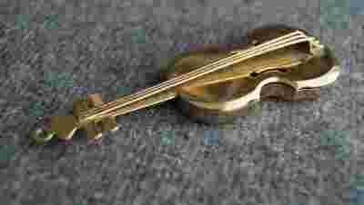 Miniaturowe skrzypce z metalu.