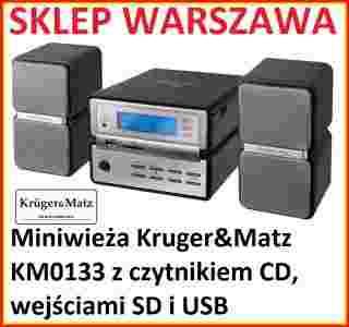 Miniwieża KM0133 to kolejny produkt marki Krüger&Matz wyróżniający się niebanalnym designem. Jej geometryczny kształt, który uzupełniają dwa akustycznie idealne głośniki złożone z podwójnych sześcianów sprawiają, że jest ona doskonałym elementem aranżacyjnym każdego pomieszczenia. Zważywszy na niewielkie rozmiary KM0133 doskonale będzie się prezentować w małej kuchni czy pokoju biurowym. Urządzenie posiada charakterystyczny dla całej serii produktów home audio marki Krüger&Matz niebieski panoramiczny wyświetlacz. Miniwieża odtwarza pliki MP3 z płyt CD, pen-drive’ów oraz kart SD, a także posiada cyfrowy tuner AM/FM z funkcją pamięci stacji. Cyfrowy zegar, który można ustawić w trybie 12 lub 24-godzinnym, posiada także funkcję budzika. Urządzenie wyposażono w wyjście słuchawkowe oraz wejście AUX, dzięki czemu można do niego podłączyć inne źródło dźwięku, np. z komputera czy odtwarzacza MP3. Do zestawu dołączony jest cienki pilot zdalnego sterowania