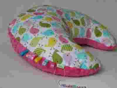 Poduszka może być również wykorzystywana w późniejszym okresie np. przy nauce siadania, do spania. Posiada wszyte kolorowe metki - co stanowi edukacyjną zaletę dla rozwijającego się, poznającego świat – dziecka. Niewątpliwie stanowi też oryginalny element dekoracyjny w pokoju dziecięcym.