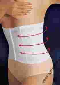 Gorset o charakterze pasa, spłaszcza partie brzucha i bioder, profiluje linię talii. Zmniejsza obwód o jeden rozmiar, czyli o 4cm! Doskonale podtrzymuje kręgosłup w dolnym odcinku, dzięki zastosowaniu specjalnego rodzaju fiszbin. Wykonany jest z dwóch warstw dzianin: zewnętrznej - modelującej oraz wewnętrznej - bawełnianej, przyjaznej dla ciała. Całość elegancka, a zarazem funkcjonalna.