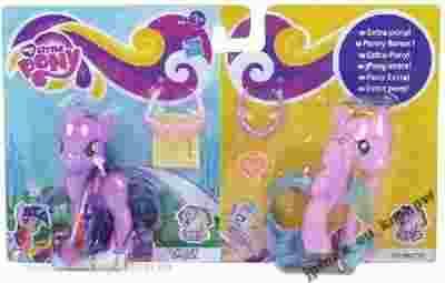 Śliczne kucyki z kolekcji My Little Pony posiadają długie grzywy do czesania oraz piękne ogony. Twilight Sparkle i Ploomette posiadają również akcesoria, które urozmaicą twoją zabawę z kucykami My Little Pony! Koniki można zabrać wszędzie ze sobą! Kucyki są małymi zwierzątkami w kolorze fioletowym z różowo-fioletową grzywą i długim ogonem oraz różówym z tęczową grzywą i ogonem! Koniki należą do niezwykłaj gromady prześlicznych kucyków My Little Pony! Od dziś możesz kolekcjonować swoje kucyki oraz ich akcesoria i rozbudowywać swoją farmę My Little Pony! W zestawie znajdują się kucyki Ploomette oraz Twilight Sparkle oraz akcesoria dla kucyków: okulary, książka, korona i pierścionek! Zabawka przeznaczona dla dzieci od 3 roku życia.