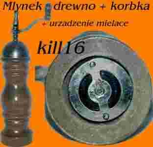 Mlynek drewno + korbka + urzadzenie mielace
