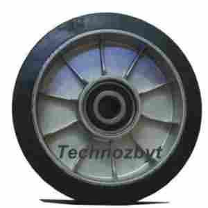 Koło przednie z bieżnikiem gumowym, wykonane na piaście aluminiowej, koło fabrycznie załozyskowane.