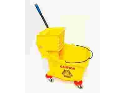 Fluorescencyjny kolor żółty i odpowiednie symbole, ostrzegają wszystkie przechodzące obok osoby o tym, że podłoga jest wilgotna i trzeba na to zwrócić szczególną uwagę. Aby jeszcze bardziej ułatwić zadanie, wiadro wyposażone jest w wyciskarkę mopa, którą obsługuje się bez większego nakłady pracy, którą można łatwo zdemontować.