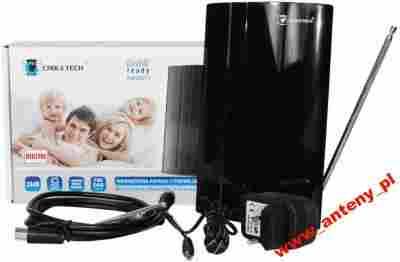 Antena wewnętrzna do odbioru DVB-T o unikalnej, panelowej konstrukcji w kolorze połyskliwej czerni. Urządzenie posiada bardzo dobre parametry szumowe. Może odbierać sygnały z polaryzacji horyzontalnej i wertykalnej. Dane techniczne: Pasmo przenoszenia: VHF: 174-230 MHz, UHF :470-862MHz Wzmocnienie: 28dB (max) Max. poziom wyjściowy: 100dBuV Impedancja: 75ohm Poziom szumów: =<3dB Zasilanie: przez oddzielny zasilacz AC / DC (DC 6V/100mA) lub Tuner TV (DC 5V/40mA) Odbiór polaryzacji: horyzontalny i wertykalny Cechy produktu Zaprojektowana w technologii SMD Ekranowanie w celu minimalizacji zakłóceń Przenośna idealnie nadająca się do zastosowań na campingu, łodziach itp.. Wsparcie dla sygnału analogowego VHF, UHF Przystosowana do poziomej jak również pniowej pracy w celu uzyskania najlepszego odbioru sygnału Stylowa kompaktowa obudowa z błyszczącym czarnym wykończeniem Kompatybilna z sygnałem HDTV cyfrowej telewizji naziemnej (DVB-T, ISDB-T, DMB-T/H, ATSC) oraz sygnałem radiowym DAB/FM.