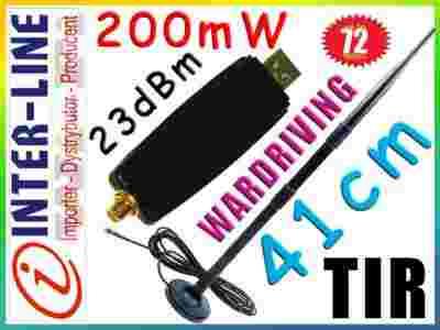 W zestawie oferowanym na aukcji wraz z USB adapterem dostarczana jest wydajna antena magnetyczna 12dbi, która znakomicie sprawdzi się w domowej sieci jak i może być wykorzystana do łączenia się z hot-spotami lub innymi sieciami na parkingach, w restauracjach itp - jest to rewelacyjne rozwiązanie do WARDRIVINGU