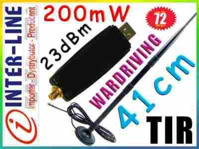 W zestawie oferowanym na aukcji wraz z USB adapterem dostarczana jest wydajna antena magnetyczna 12dbi, która znakomicie sprawdzi się w domowej sieci jak i może być wykorzystana do łączenia się z hot-spotami lub innymi sieciami na parkingach, w restauracjach itp - jest to rewelacyjne rozwiązanie do WARDRIVINGU
