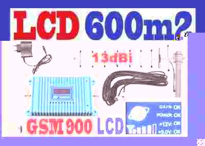 Komplet - wzmacniacz GSM z super wyświetlaczem LCD aż do600m2 z mocną anteną typu "bat"