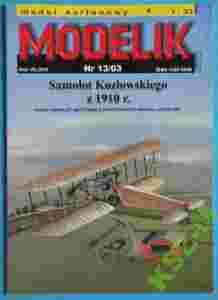 Model kartonowy do sklejenia wydawnictwa Modelik 13/2003 Samolot Kozłowskiego - samolot polskiego pioniera lotnictwa z 1910 roku