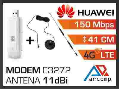 W zestawie znajduje się antena wewnętrzna dookólna 11dBi (41cm), posiadająca 5m kabla z wtyczką CRC9 do modemów Huawei.
