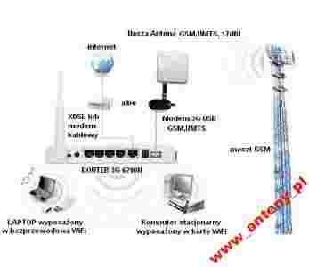 - Udostępnia połączenie 3G lub kablowe/xDSL wszystkim użytkownikom sieci