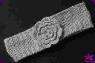 MODNA ciepła SZARA opaska JESIEŃ ZIMA z kwiatkiem