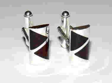 Srebrne spinki do mankietów z bursztynem