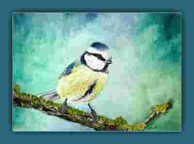 Modraszka na gałązce-akwarela A4 ptaki Gal.Astry