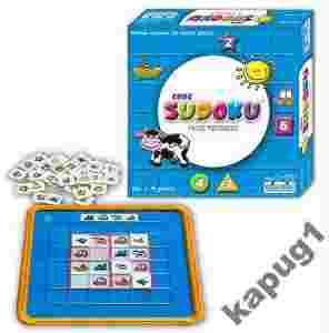Fascynująca gra umysłowa w wersji dla najmłodszych (od 4 do 10 lat). Opiera się na tych samych zasadach, co łamigłówki Sudoku dla dorosłych i starszych dzieci, ma jednak mniejszą ilość pól, a dołączone płytki są ilustrowane.