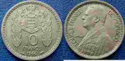MONAKO, 10 FRANKÓW, 1946, MENNICZE-