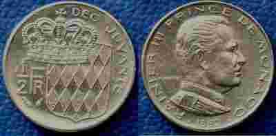 MONAKO, 1/2 FRANKA, 1982, PIĘKNE