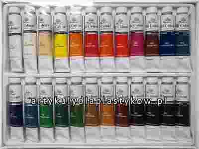 Komplet farb olejnych w 24 kolorach, w tubkach 12 ml. Farby te zostały opracowane z myślą o hobbystach, osobach początkujących oraz uczniach i studentach.