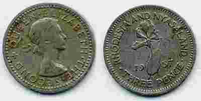 Moneta Rodesya and Nysaland 3 pensy 1957