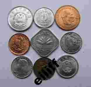 MONETY ŚWIATA - ZESTAW 9 MENNICZYCH MONET