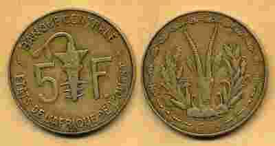 Monety ... Afryka Zachodnia 5 Francs - 1984r