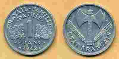 Monety ... Francja 1 Franc - 1942r