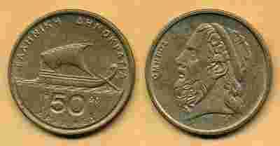 Monety ... Grecja 50 Drachmes - 1990r