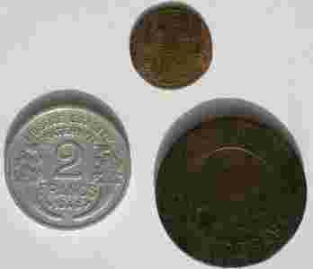 Monety obiegowe -2 franki, 5 kopiejek, 10 halerzy